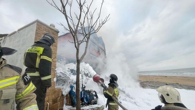 Пожар на месте падения вертолета в Дагестане потушили
