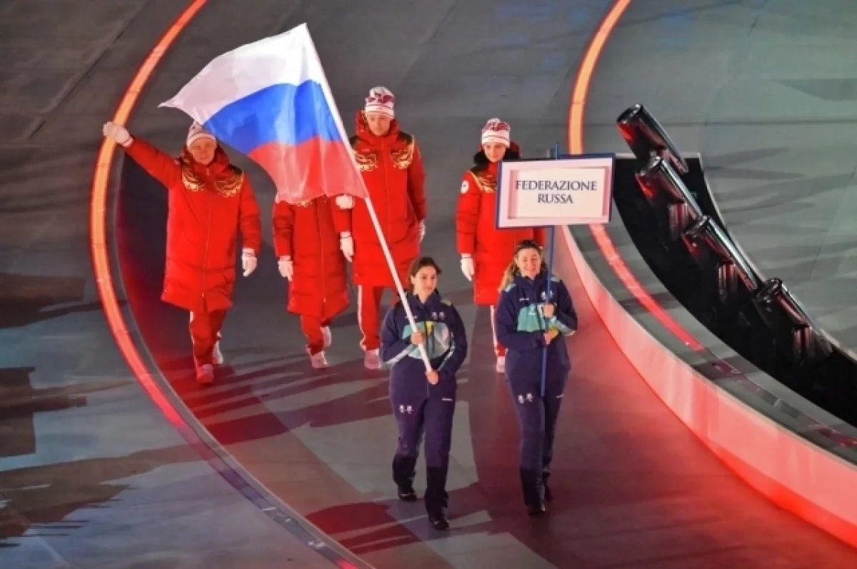 Делегация РФ вышла под национальным флагом на парад спортсменов во время церемонии открытия Паралимпийских игр в Италии.