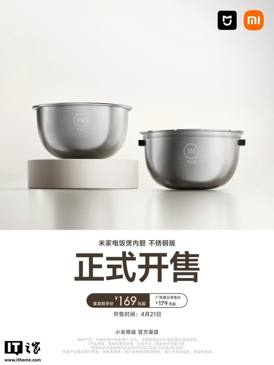 Срочно (21.04.26): Xiaomi начала продавать отдельно чаши для рисоварок Mijia: есть версии из стали и титана - новости smi.mobi (21.04.26)